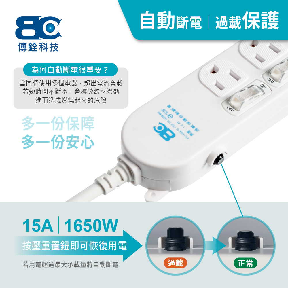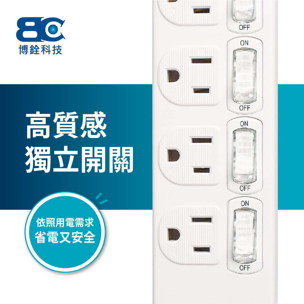 【BC博銓】KTC-636A 防雷擊15A/4.5M/六開六插3孔 90度插頭