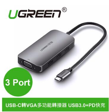 UGREEN綠聯 (USB-C轉VGA多功能轉接器 3 Port USB3.0+PD快充) (50210)